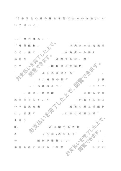 理科指導法「『小学生の理科離れを防ぐための方法』について述べよ」(A判定レポート課題)