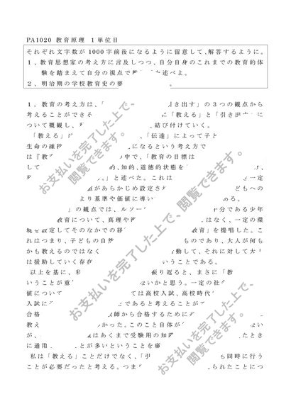 明星大学 PA1020 教育原理(2019年) 1単位目(2020,21年対応)