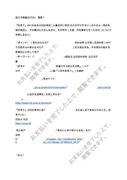 【日大通信】2019~2022年度 国文学講義Ⅲ(中世) 課題1