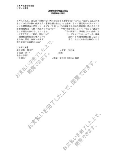 日大通信 道徳教育の理論と方法 リポート課題 2019~2022年度版