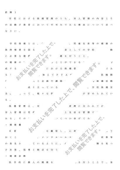 学校保健 設題1 【H31年度 姫路大学 合格レポート】