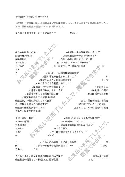 中央大学 通信課程 【保険法・海商法】合格レポート (被保険利益の機能について)