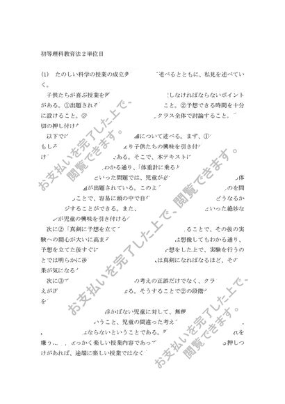 【明星通信】☆PB2140 初等理科教育法 2単位目 合格レポート☆