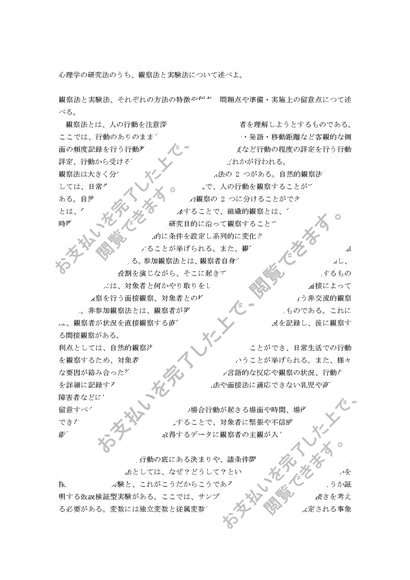 【A判定】心理学研究法②(東京福祉):心理学の研究法のうち、観察法と実験法について述べよ。
