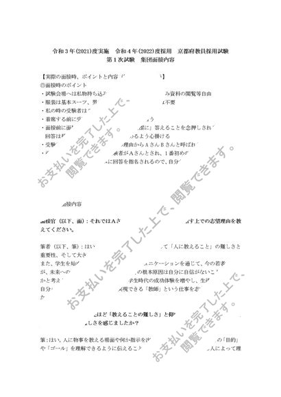 令和4年度採用 京都府教員採用試験 集団面接内容
