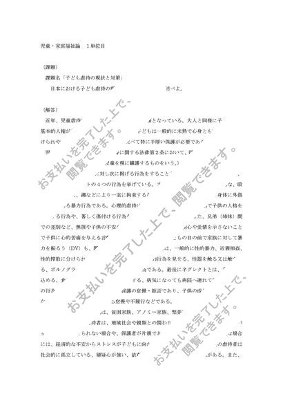 東北福祉大学通信 児童・家庭福祉論【優】評価 子ども虐待の現状と対策について