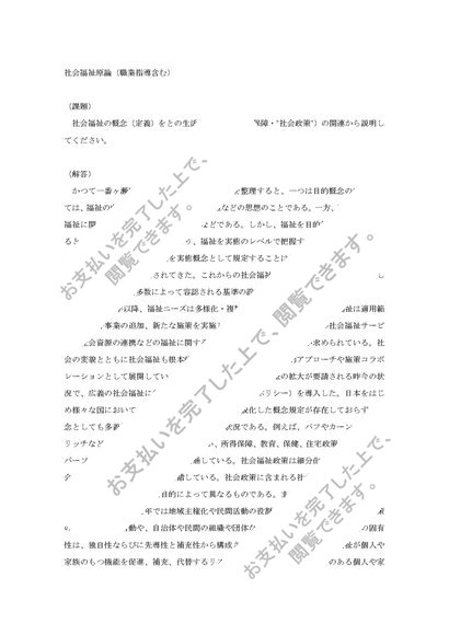 東北福祉大通信 社会福祉原論【優】評価 社会福祉の概念について