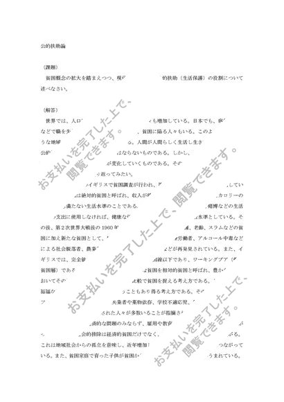 東北福祉大学通信 公的扶助論【良】評価 現代社会における公的扶助(生活保護)の役割について