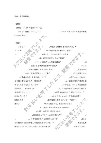 東北福祉大学通信 児童・家庭福祉論【良】評価 子どもの権利について