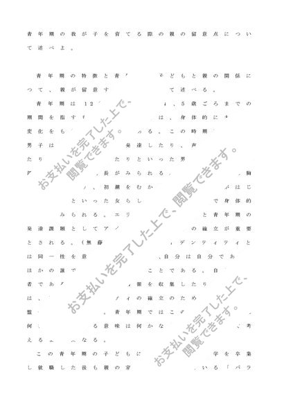 社会・集団・家族心理学(家族):青年期の我が子を育てる際の親の留意点について述べよ。