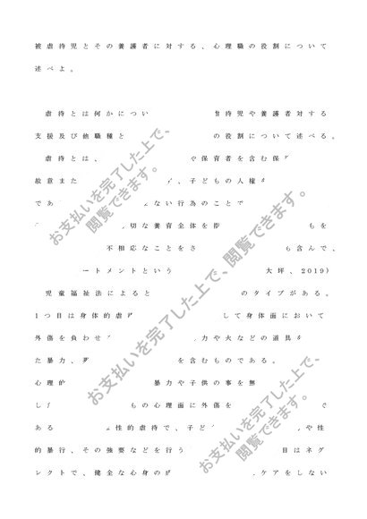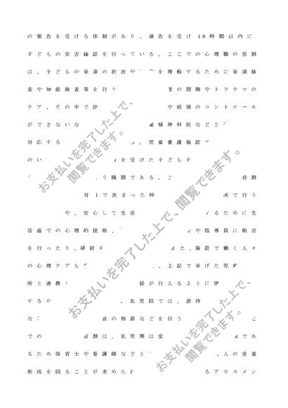 福祉心理学:被虐待児とその養護者に対する、心理職の役割について述べよ。