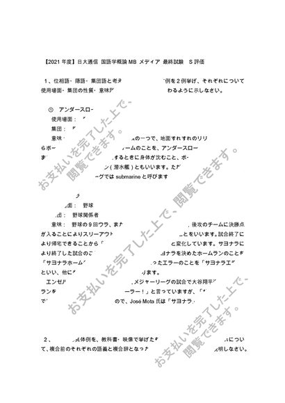 【2021年度】日大通信 国語学概論MB メディア 最終試験 S評価