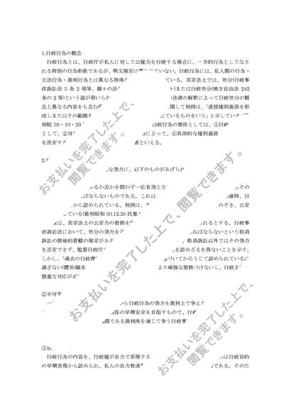行政法_行政行為の概念/A評価合格/中央大学法学部通信教育課程