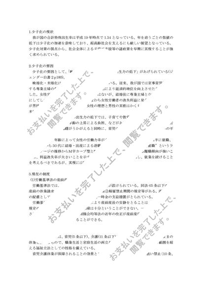 福祉と女性_少子化の現状と要因・子育て支援_特殊講義/A評価合格/中央大学法学部通信教育課程