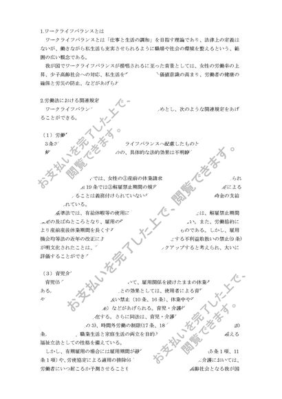 労働法(個別的労働法)_ワークライフバランス/B評価合格/中央大学法学部通信教育課程