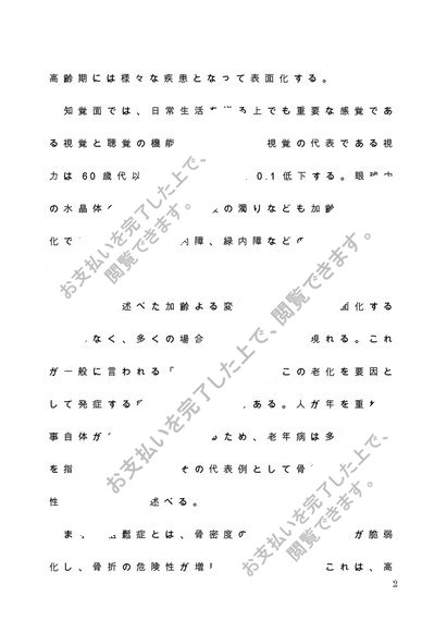 老化に伴う身体・生理面の変化をふまえ、代表的な老年病2つを簡単に説明した上で、その治療、対応策について論ぜよ。S評価
