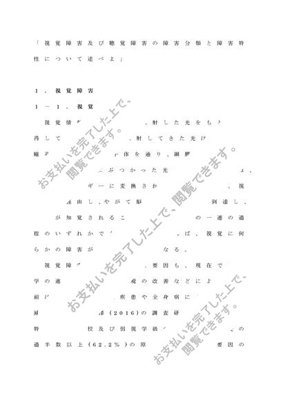 視聴覚障害者の心理・生理・病理「視覚障害及び聴覚障害の障害分類と障害特性について述べよ」(A判定レポート課題)