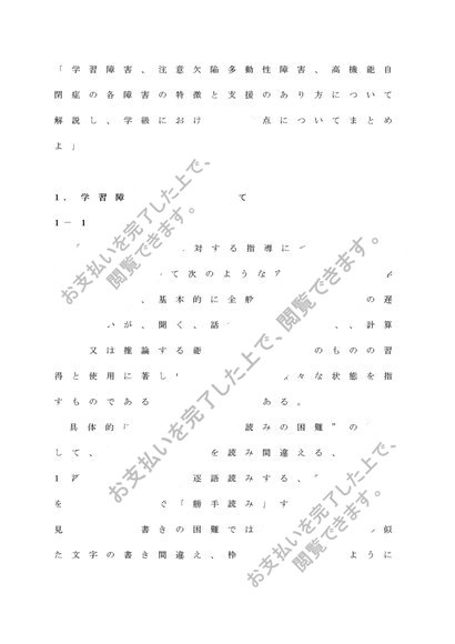 重複障害・LD等教育総論「学習障害、注意欠陥多動性障害、高機能自閉症の各障害の特徴と支援のあり方について解説し、学級にお