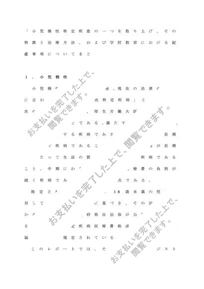 病弱教育Ⅱ「小児慢性特定疾患の一つを取り上げ、その特徴と治療方法、および学校教育における配慮事項についてまとめよ」(A判