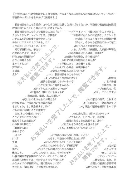 『小学校において教育相談をおこなう場合、どのような点に注意しなければならないか。いじめ・不登校のいずれかをとりあげて説明せよ。』