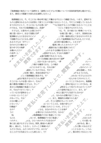 『象徴機能の発生について説明せよ(説明には子どもの行動についての具体的研究例も提示する)。また、教育との関連で大切な点を説明しなさい。』