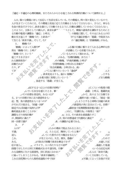『適応・不適応の心理的機制、またそれらからひき起こされる特徴的行動について説明せよ。』