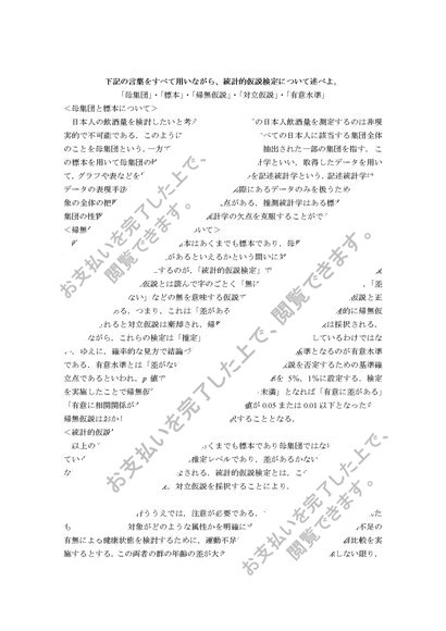 下記の言葉をすべて用いながら、統計的仮説検定について述べよ。