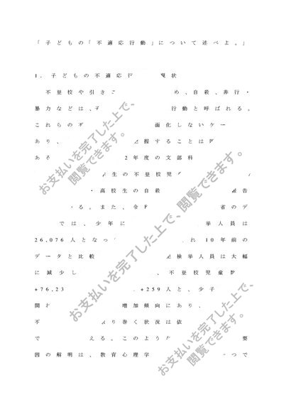 【A評価】教育・学校心理学②(東京福祉大学)「子どもの「不適応行動」について述べよ。」
