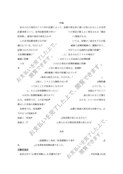 A〇評価/放送大学/心理学実験2「自由再生における系列位置効果」