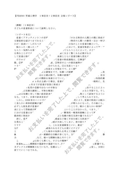 〈明星通信〉児童心理学 PB2090 1単位目+2単位目セット 合格レポート