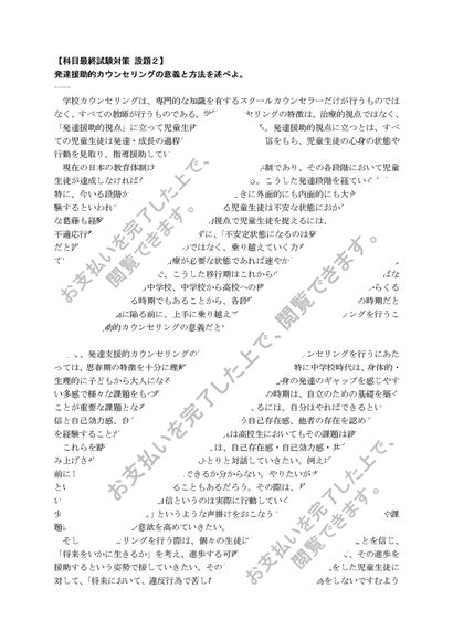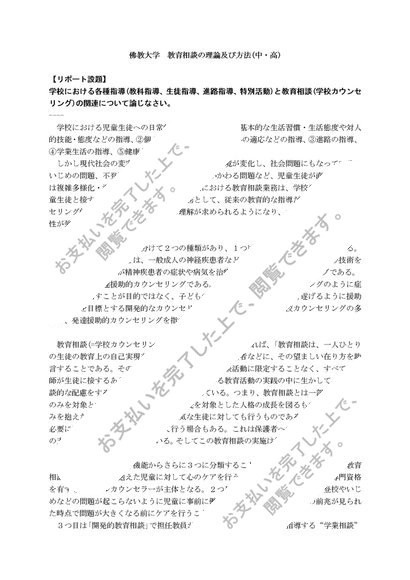 【2024年度対応】 佛教大学 教育相談の理論及び方法(中・高) A判定 リポート&科目最終試験対策7題セット