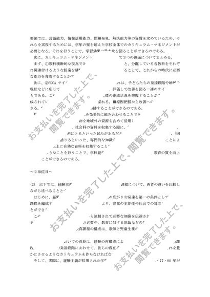 【明星通信】☆PA3100 教育課程論 1・2単位セット 合格レポート☆