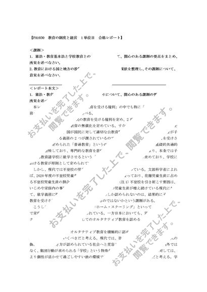 PA1030 教育の制度と経営 1単位目 合格レポート