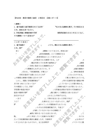 PA1030 教育の制度と経営 2単位目 合格レポート