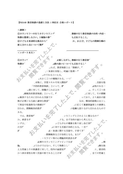 PA3140 教育相談の基礎と方法 1単位目 合格レポート