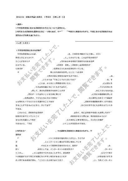 PA3110 道徳の理論と指導法 1単位目 合格レポート