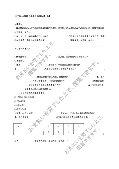 PB2010 算数 2単位目 合格レポート