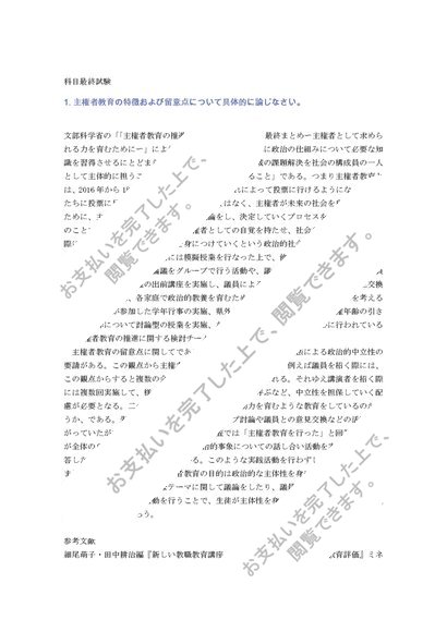 【佛教大学】学校教育課程論 説題(1) 最終試験解答付き