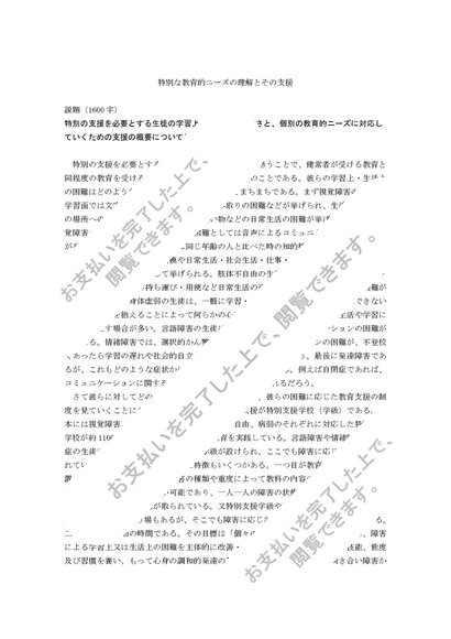 【佛教大学】特別な教育的ニーズの理解とその支援 説題(1)最終試験答案つき