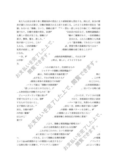 【聖徳大学通信心理】神経・生理心理学Ⅰ 情動について 評価S