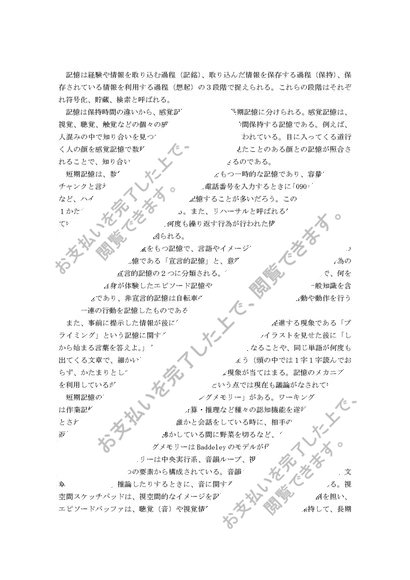 【聖徳大学通信心理】神経・生理心理学Ⅰ 記憶について 評価S