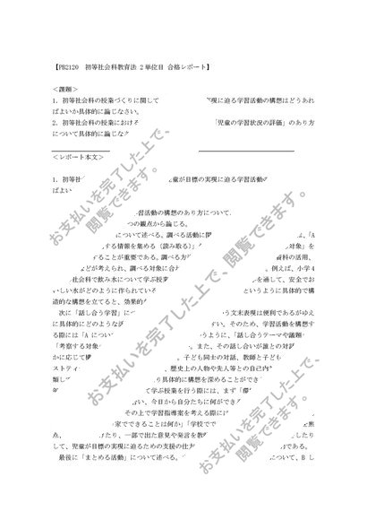 PB2120 初等社会科教育法 2単位目 合格レポート