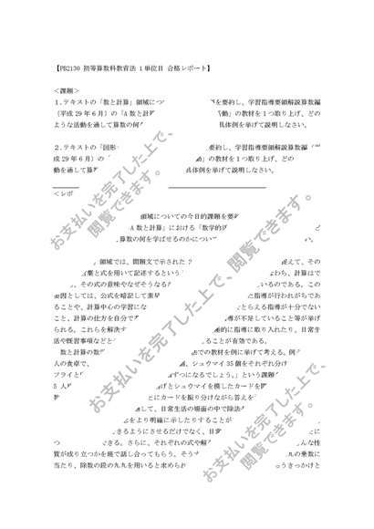 PB2130 初等算数科教育法 1単位目 合格レポート