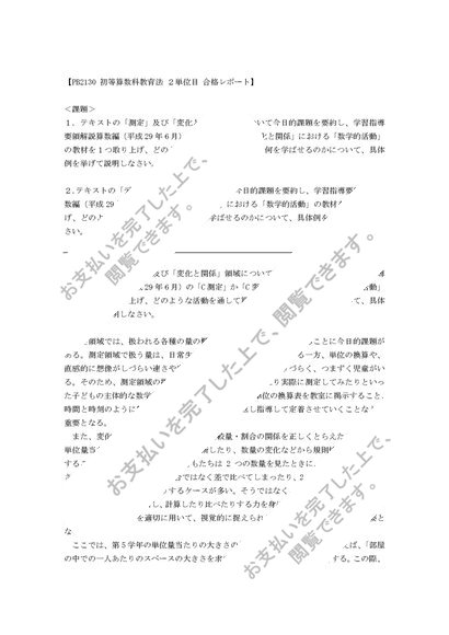PB2130 初等算数科教育法 2単位目 合格レポート