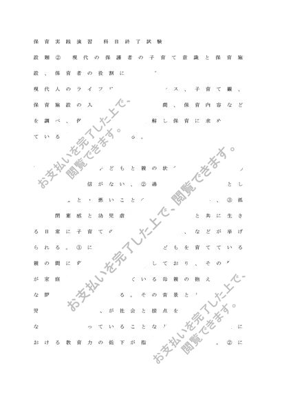 東京福祉大学 保育実践演習 科目終了試験 設題② B+評価