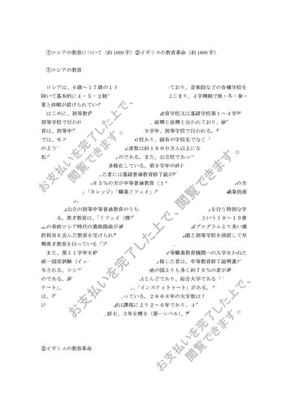 ロシアの教育(1000字)とイギリスの教育革命(1600字)