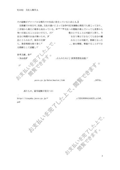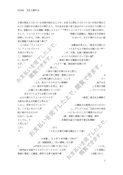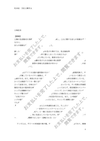 明星大学通信 文化人類学A 合格レポート 1単位目、2単位目セット