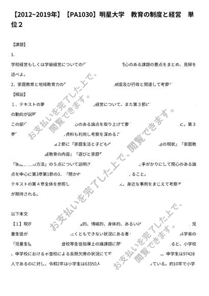 【2012~2019年】【PA1030】明星大学 教育の制度と経営 単位2