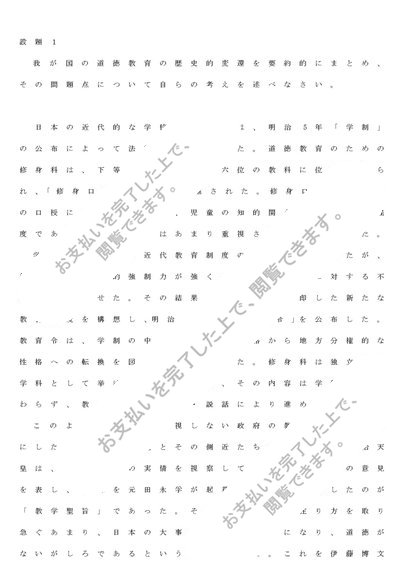 道徳教育論 設題1【H31年度 姫路大学 合格レポート】
