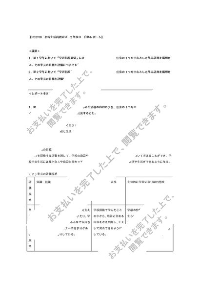 PB2150 初等生活科教育法 2単位目 合格レポート
